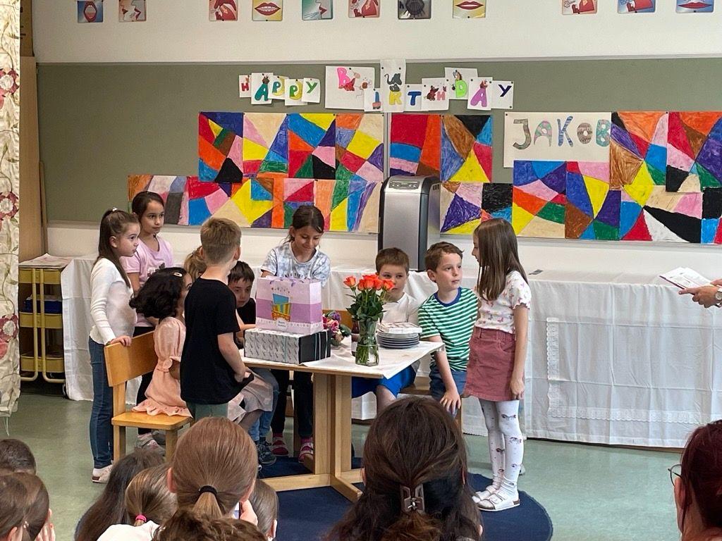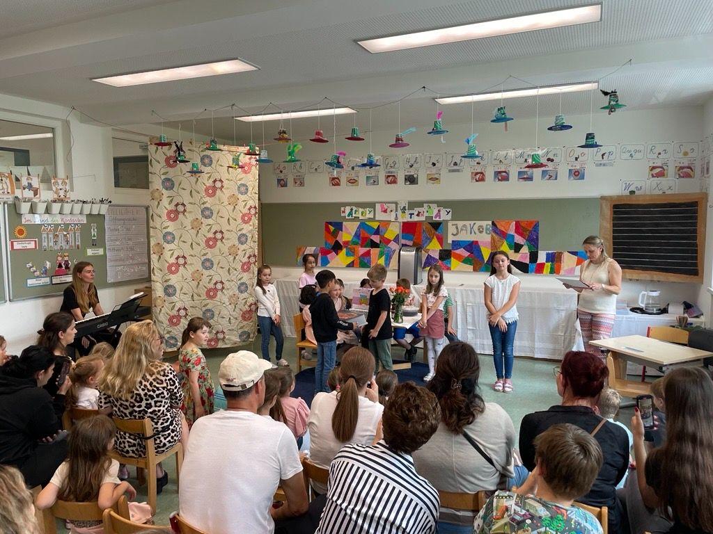 Die 2a-Klasse brachte das Musical „Die verschwundene Geburtstagstorte“ auf die Bühne. Mit viel Spielfreude und Engagement präsentierten die Kinder ihr Stück gleich in zwei Aufführungen. Dabei wurden die Hauptrollen bewusst getauscht, sodass verschiedene Kinder ins Rampenlicht treten konnten. Unter der Leitung von Simone Oberhauser und der Klassenlehrerin Katrin Astl zeigte sich eindrucksvoll, wie sehr die Schülerinnen an Selbstvertrauen gewannen und gemeinsam über sich hinauswuchsen.